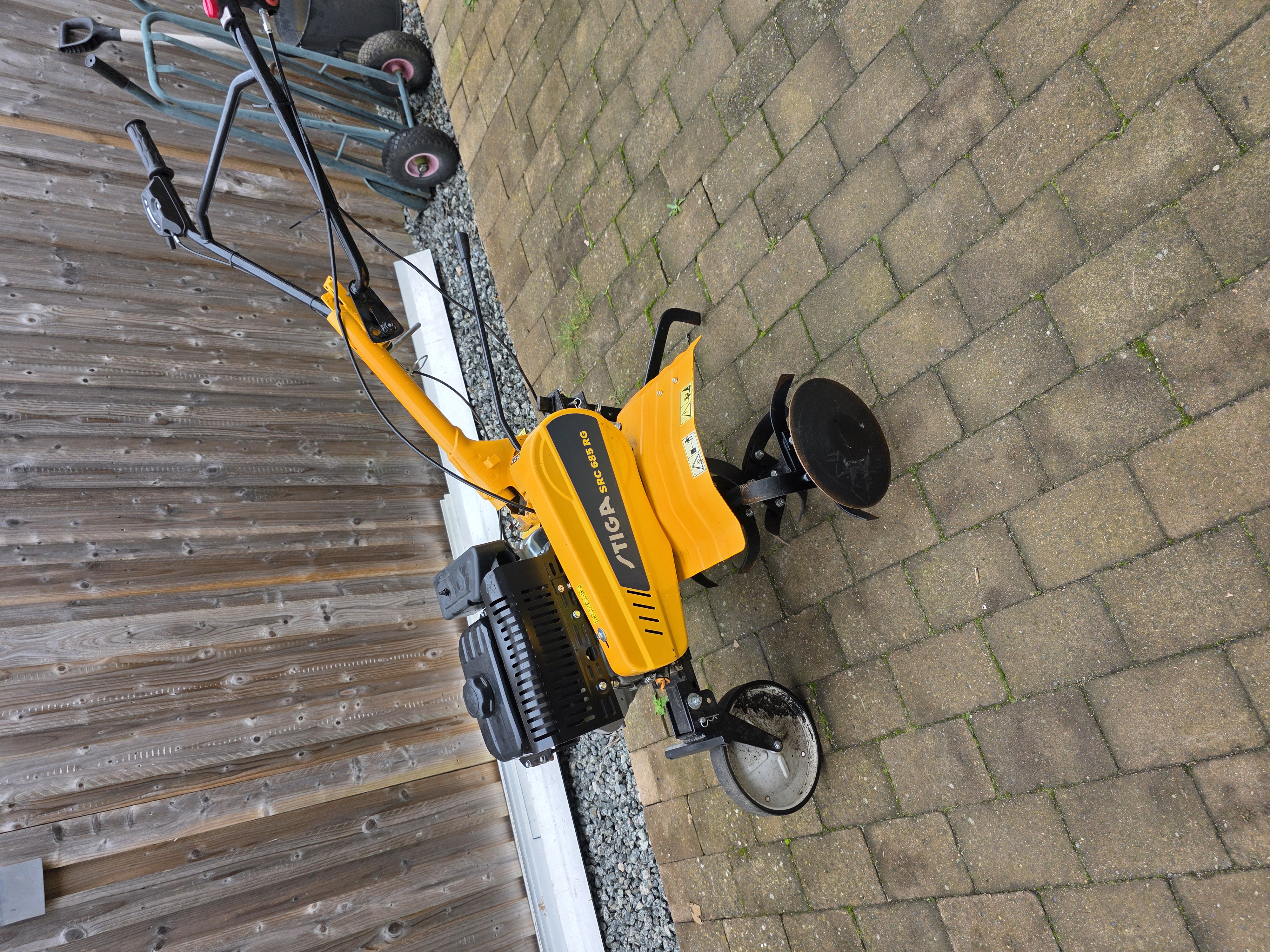 Du bruger en jordfræser til at forberede jorden til dyrkning. Maskinen hakker jordklumperne op og løsner jorden for at ilte den.